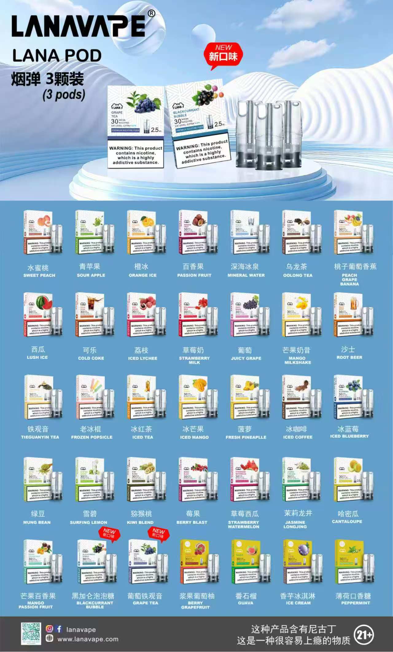Lana電子煙煙彈以其高質量的冰涼口感和多元化的口味而聞名,每一款Lana電子菸彈都經過精心調配,口感濃郁且容易入口,呈現濃厚醇滑的口感和高質量的霧化感。